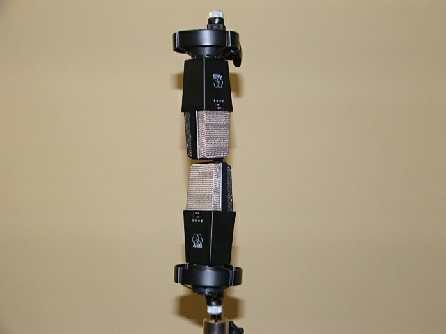 This is perhaps the best known of all single point microphone techniques. Almost every engineer has at least heard of a 'Blumlein pair,' as crossed figure-of-eights (NOT cardioids as some mistakenly believe) at 90 degrees are commonly known, even though Blumlein himself patented other techniques which are described above. It comprises two figure of 8 microphones, one on top of the other to make the capsules as coincident as possible, angled at 90 degrees to each other.